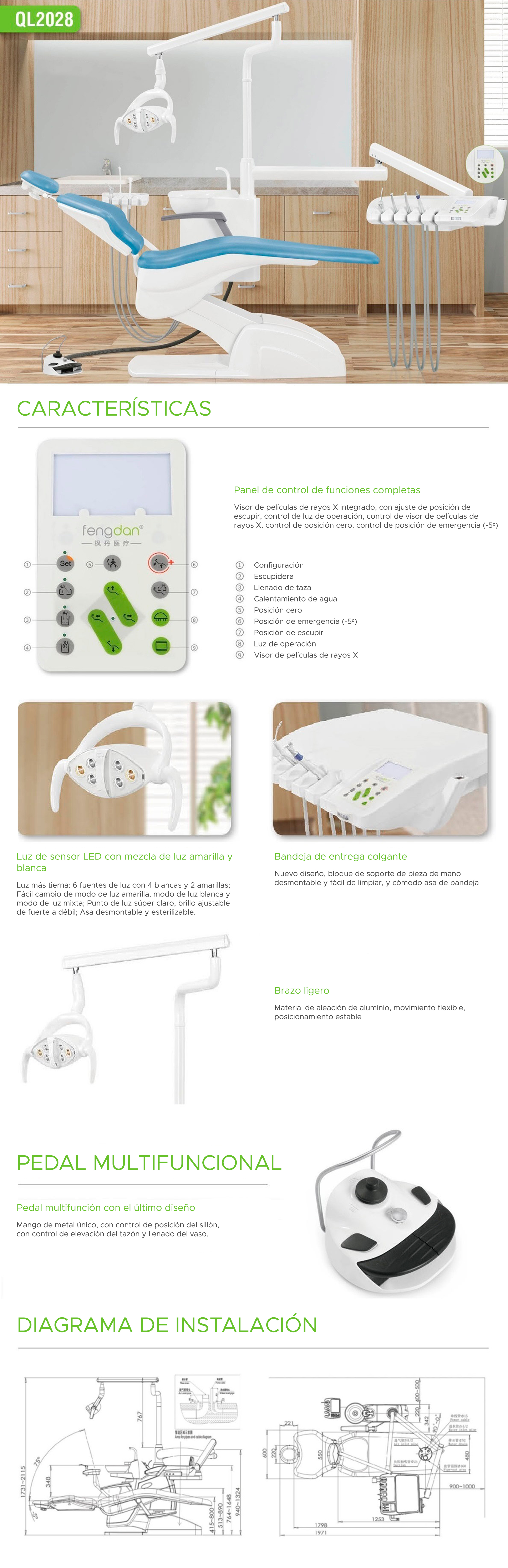 Sillón Dental Integral -Lámpara de iluminación con 6 Led. -Cabezal posicionable para adultos y niños. -Módulo auxiliar con segundo comando. -Salivero de cerámica fácil de limpiar. -Sillón silencioso que se posiciona según la necesidad del profesional . -Tapizado en vinilo libre de costuras. -Interior de espuma de poliuretano de alta resistencia. -Pedal inteligente multifuncional. -Mando principal neumático con desplazamiento suave y preciso. -Panel de control de todas las funciones del equipo. -Negatoscopio led. -Incluye Taburete -Conexión caja externa Presentación Por unidad